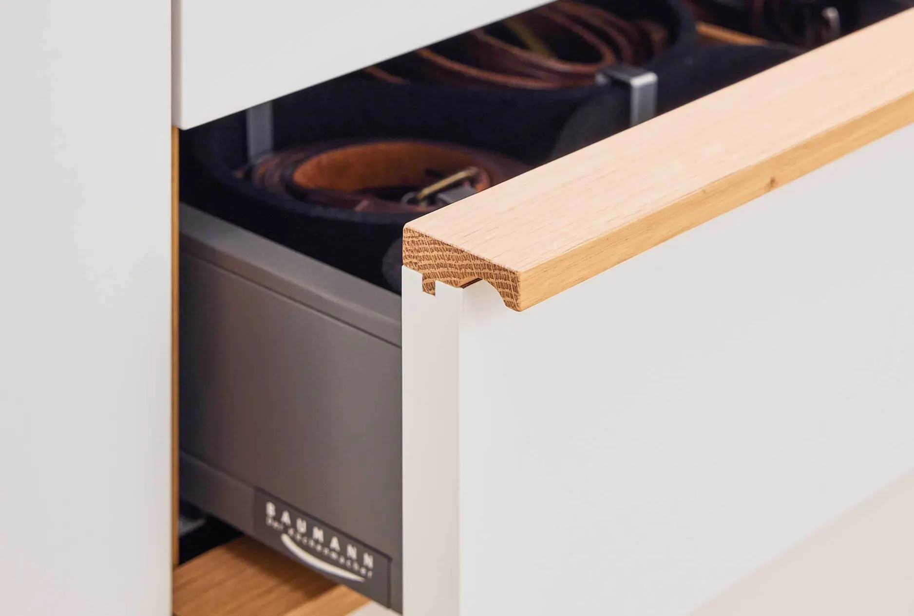 Viel Stauraum und rundum unsichtbar integrierte Schubladen und Schränke